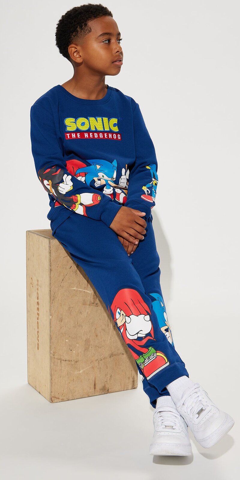 Prepracované detaily zahŕňajú výšivku s ikonickým motívom Sonic The Hedgehog, elastický pás so šnúrkou a pohodlné rebrované manžety. Súprava obsahuje mikinu s dlhým rukávom a tepláky so športovým strihom.