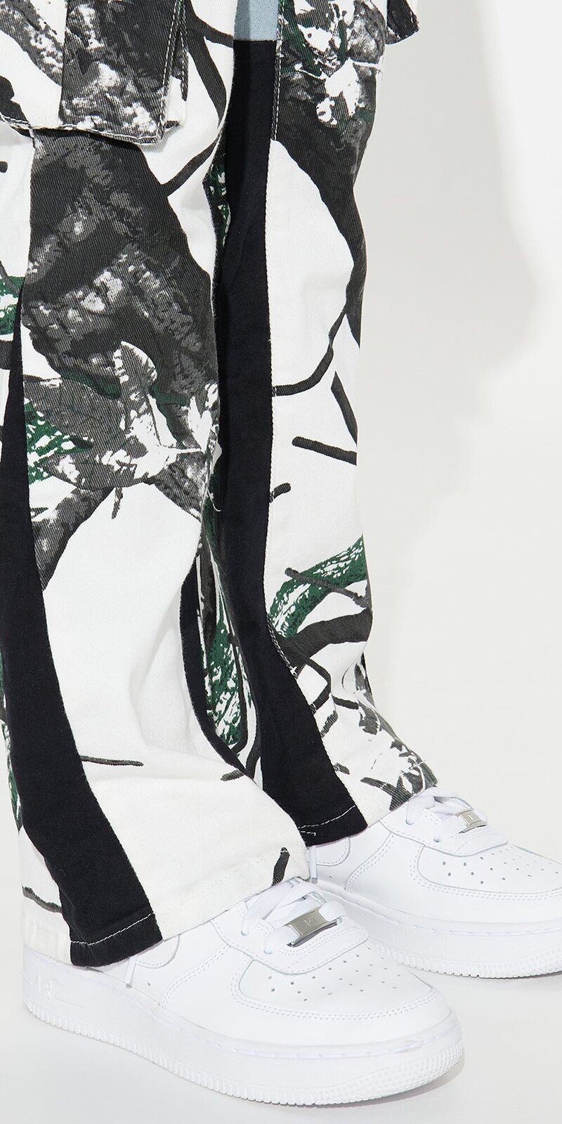 Bočné cargo vrecká poskytujú dostatok priestoru na drobnosti, zatiaľ čo pútka na opasok a zapínanie na gombík dodávajú nohaviciam praktický charakter. Rozšírený strih vytvára moderný a uvoľnený vzhľad.