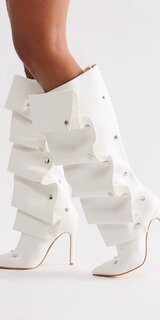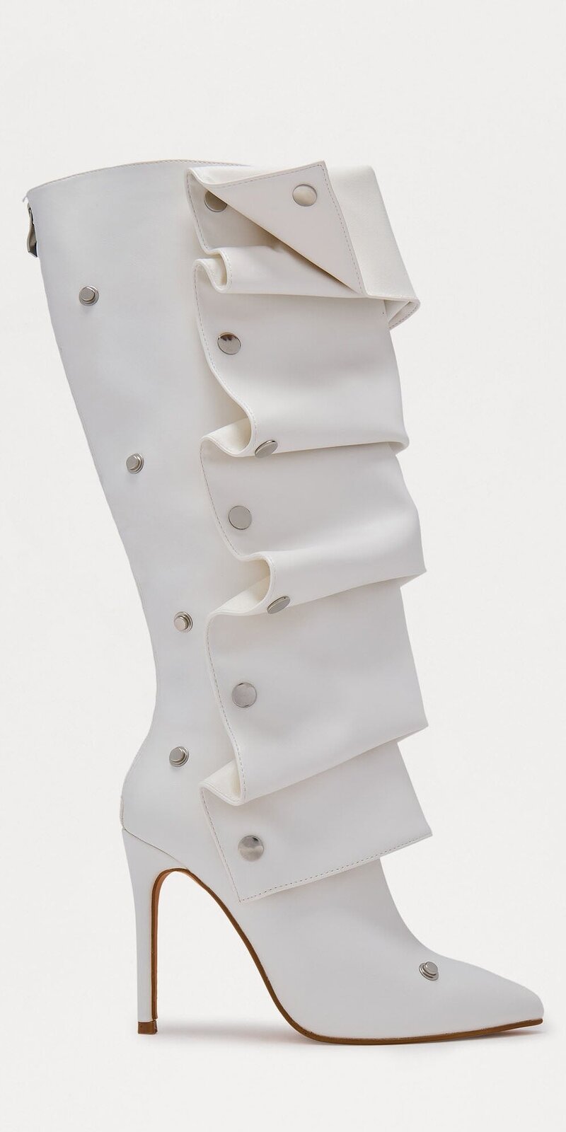 Biele čižmy s riasením a kovovými detailmi Zväčšiť