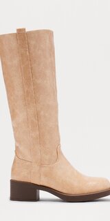 Vysoké čižmy po kolená s nízkym podpätkom v béžovej farbe