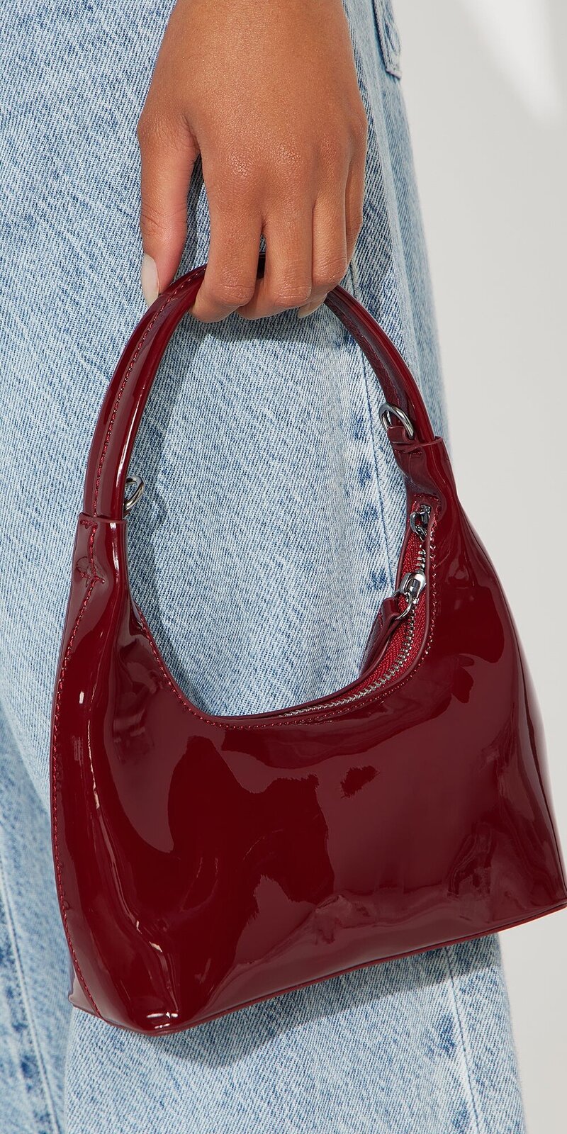 Patentový lesk zvýrazňuje hlboký bordový tón a pôsobí exkluzívnym, moderným dojmom. Vďaka jednoduchému ramennému prevedeniu sa pohodlne nosí a zachováva si čistú, nadčasovú líniu.