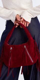 Bordová semišová kabelka s strapcami na rameno Zväčšiť