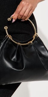 Minimalistická čierna listová kabelka so štýlovým otvorom na ruku, ktorý umožňuje pohodlné nosenie bez popruhu. Vyrobená zo syntetického materiálu s hladkým, jemne lesklým povrchom pôsobí luxusne a moderne. Ideálna na večerné príležitosti aj elegantné mestské outfity.