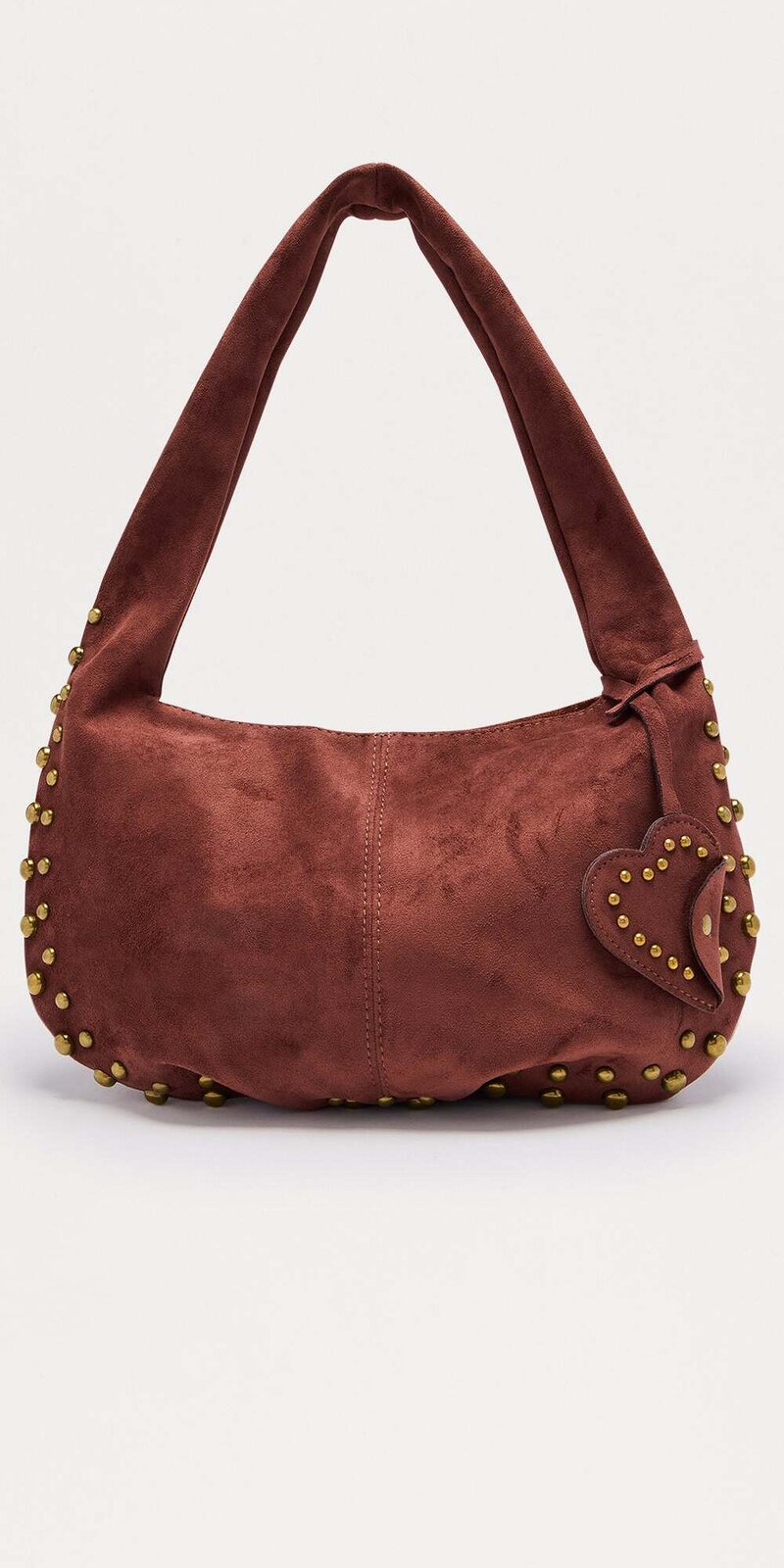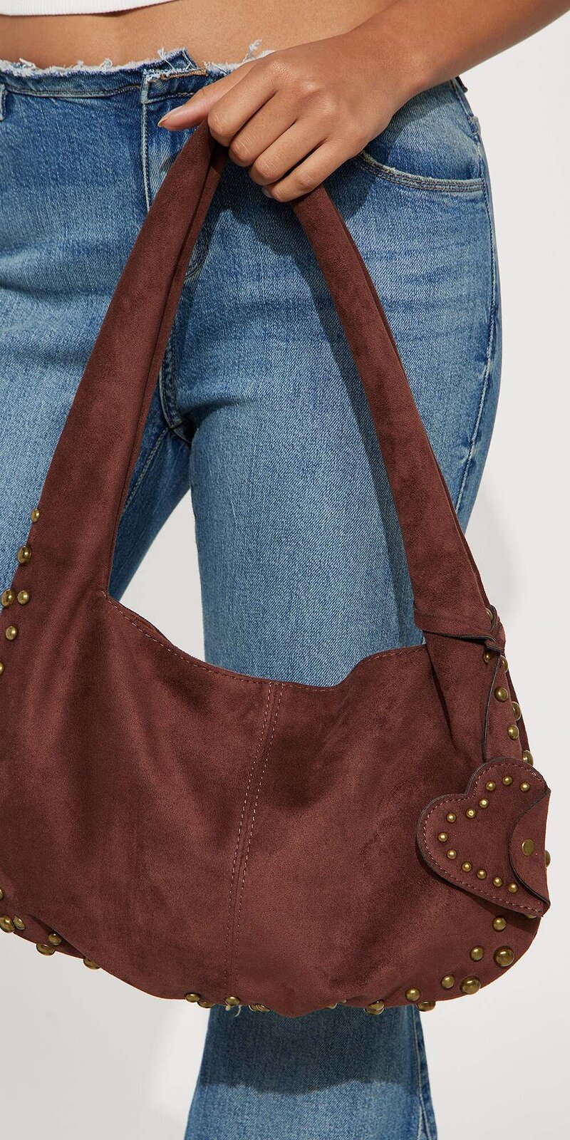 Hnedá kabelka z brúsenej kože so srdcovým detailom a cvokmi