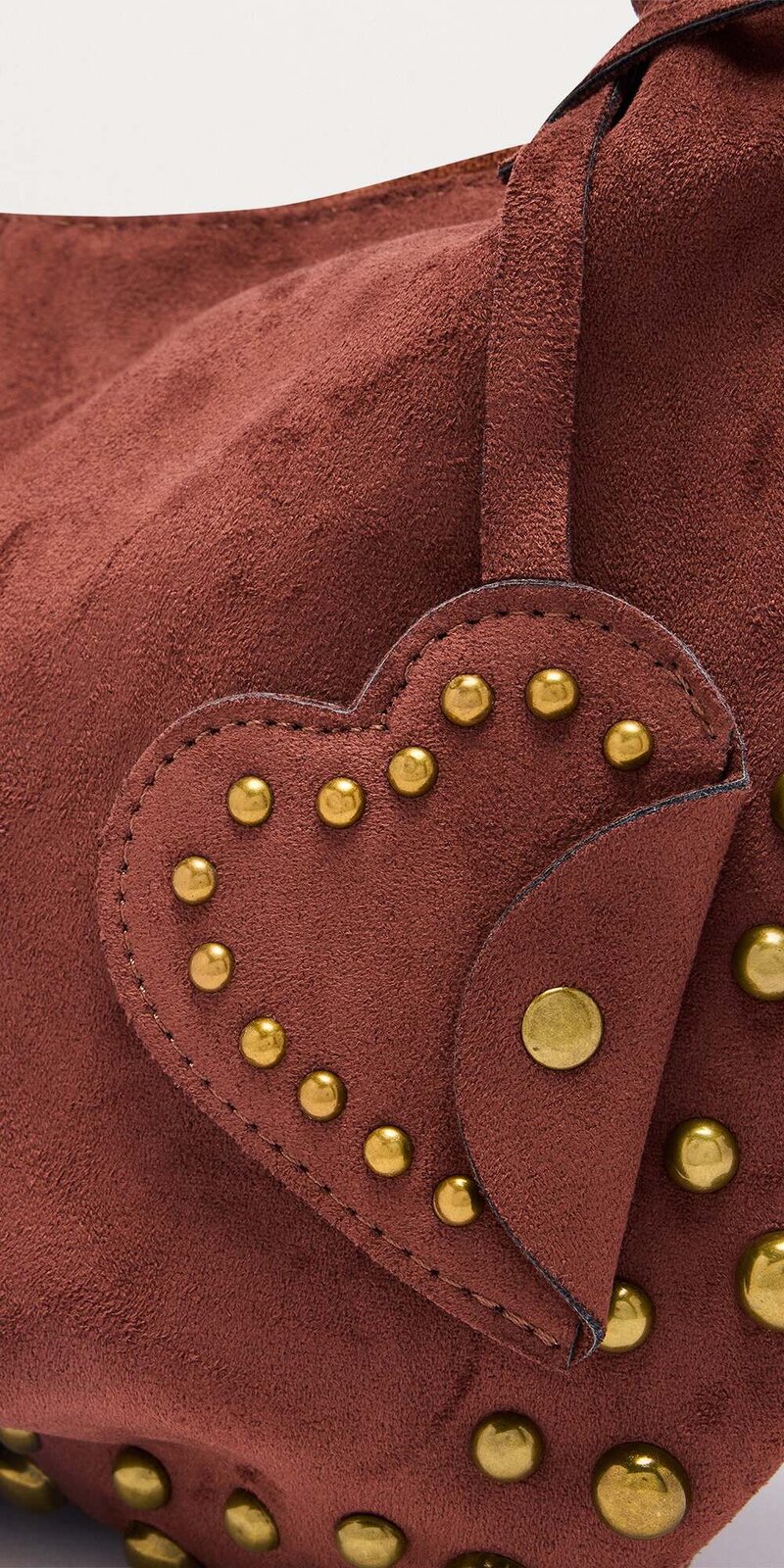 Hnedá kabelka z brúsenej kože so srdcovým detailom a cvokmi Zväčšiť