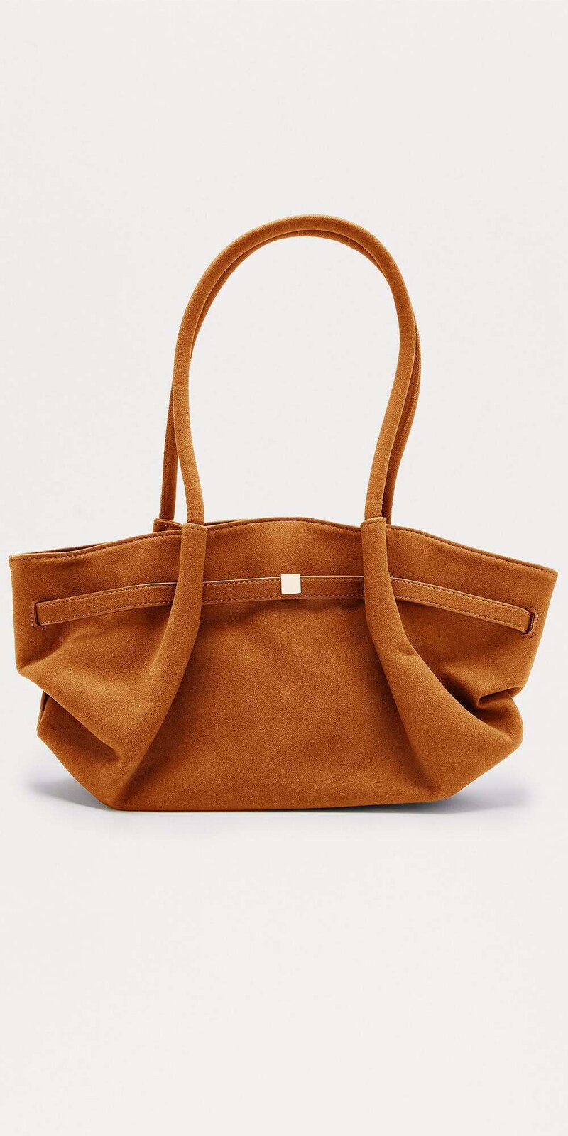Hnedá oversized semišová ramenná kabelka Zväčšiť