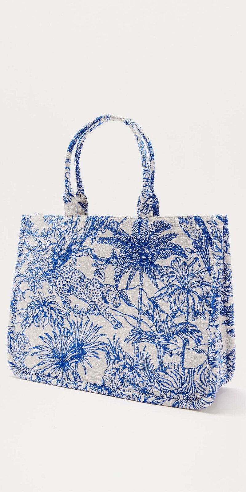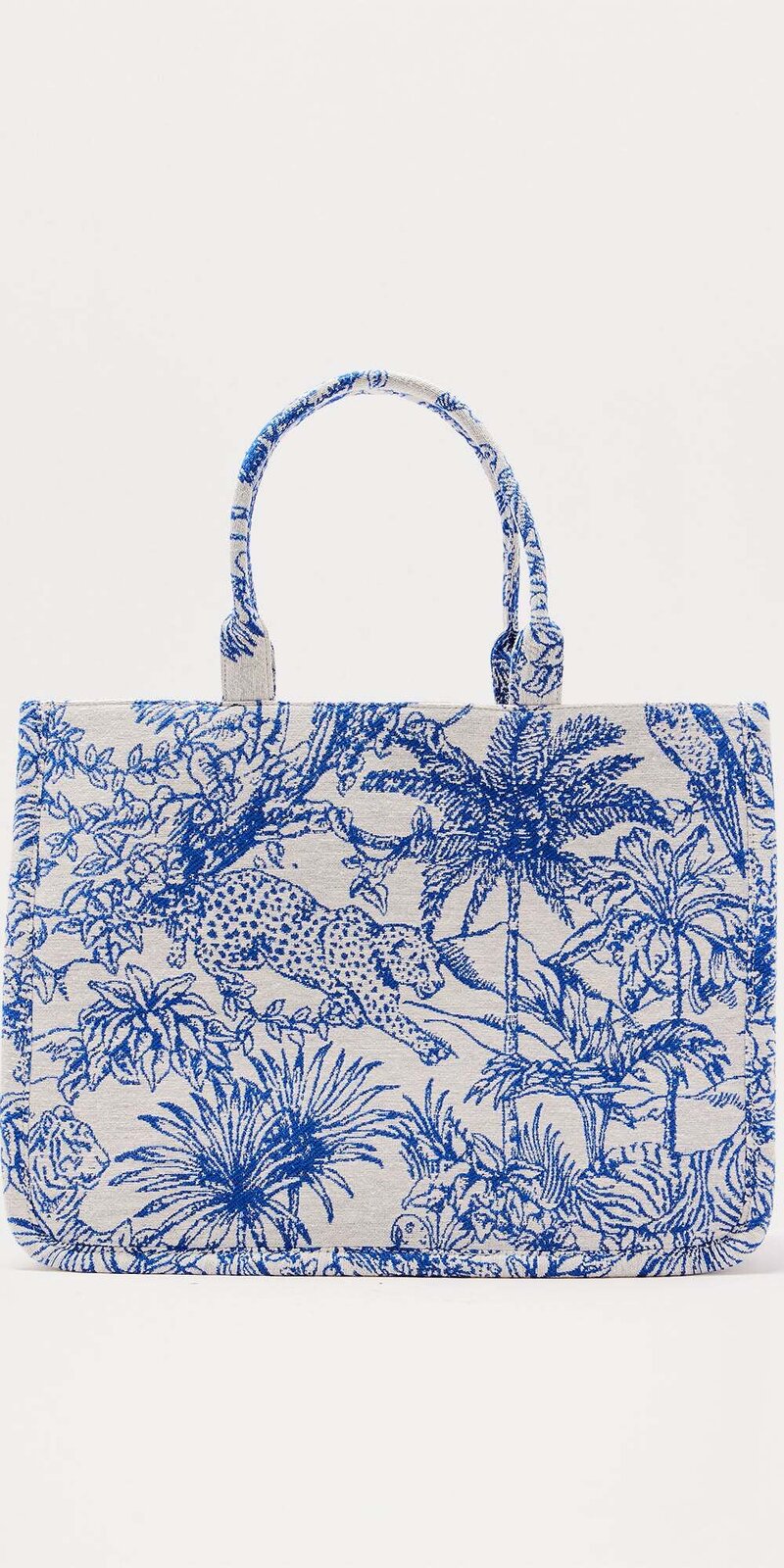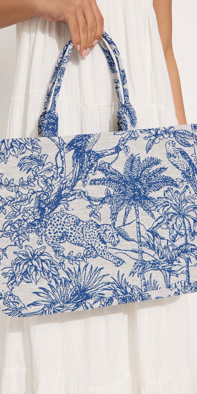 Modrá plátená tote kabelka s tropickým vzorom Zväčšiť