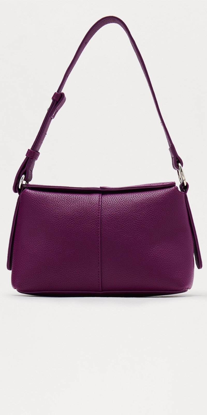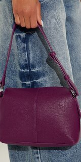 Elegantná malá ramenná kabelka v hlbokom slivkovom odtieni, vyrobená zo syntetickej kože s hladkým, mierne lesklým povrchom. Pôsobí luxusne, kompaktne a je vhodná na každodenné aj večerné nosenie. Súčasťou je odnímateľný popruh v rovnakom materiáli.
