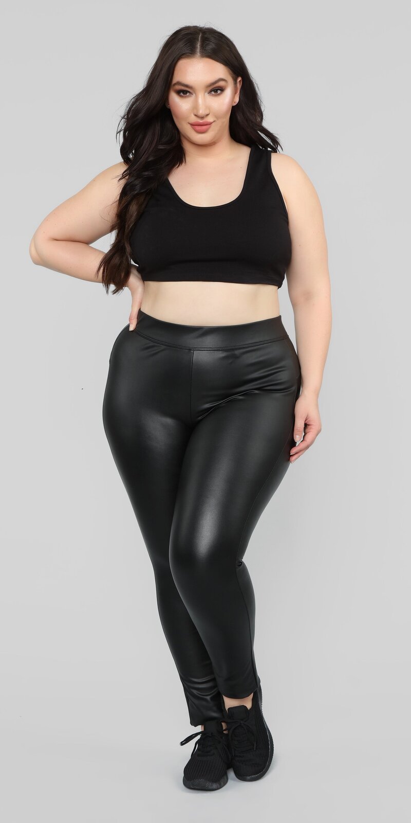 Tieto čierne legíny v koženom vzhľade sú stvorené pre ženy, ktoré milujú výrazný štýl s nádychom elegancie. Hladký povrch s jemným leskom pôsobí sebavedomo, moderne a dokonale podčiarkuje módny charakter celého outfitu.