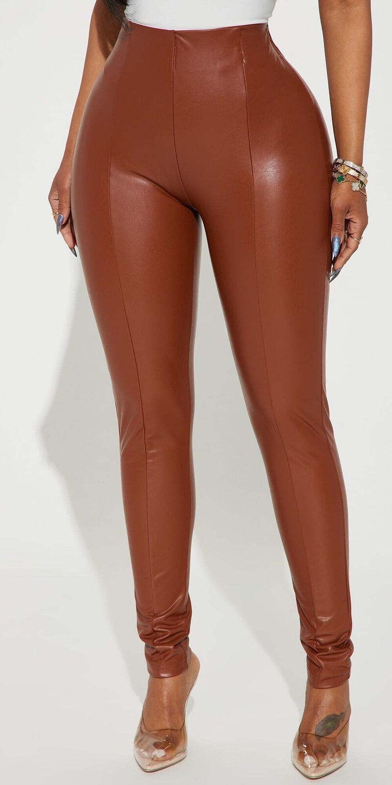 Koženkové vysoké legíny v odtieni koňak Koňak