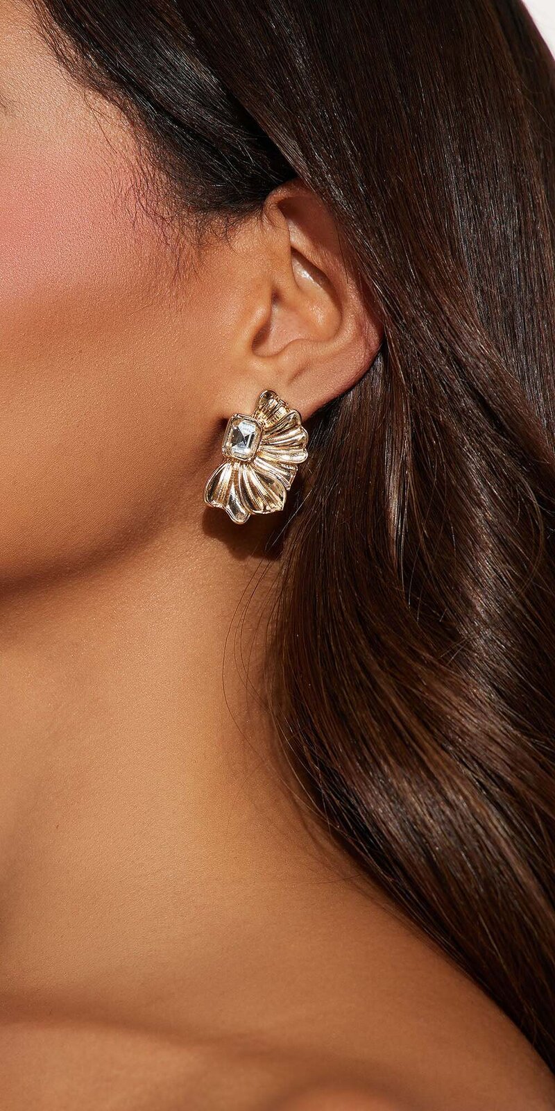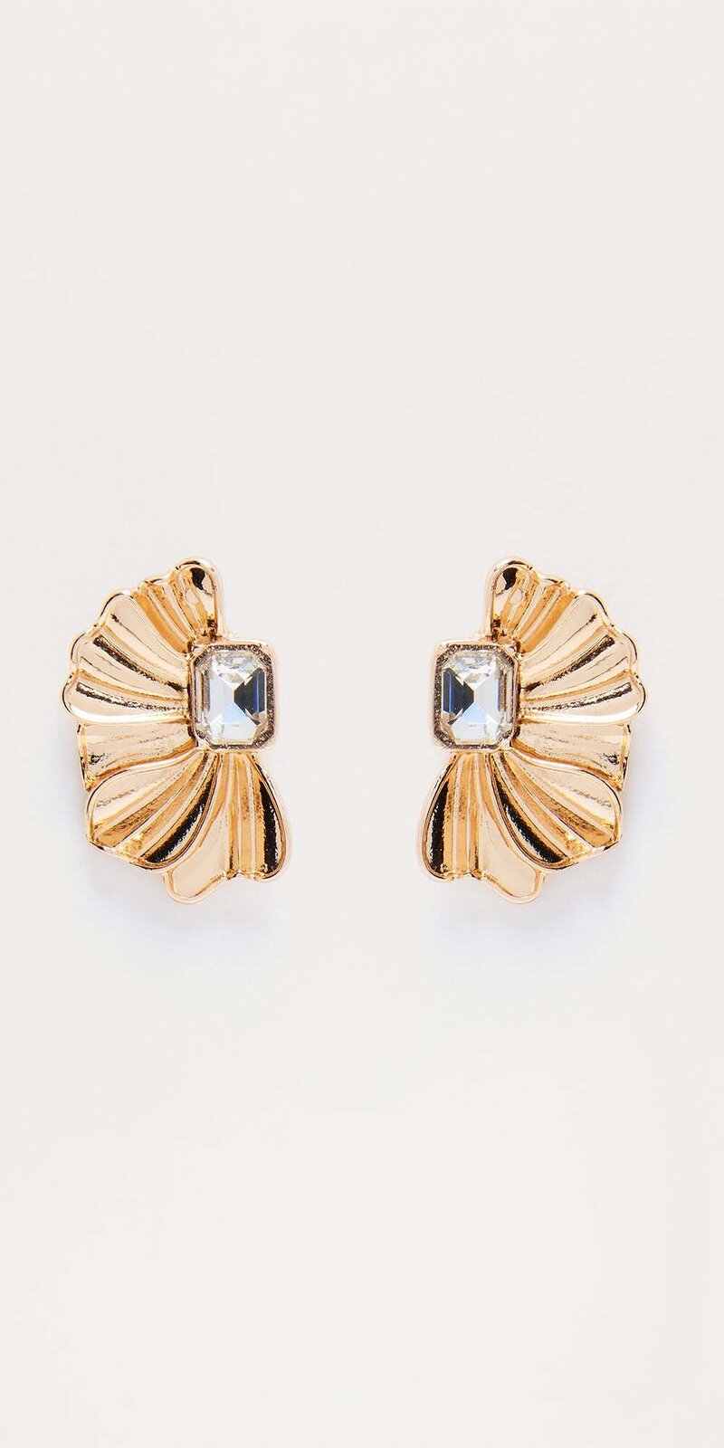 Zvýrazni svoj outfit s týmito elegantnými zlatými náušnicami s kvetinovým dizajnom a trblietavým kryštálovým detailom. Tieto náušnice sú dokonalou voľbou na špeciálne príležitosti aj každodenné nosenie. Vyrobené z kvalitného kovu, vystupujú ako výrazný doplnok, ktorý rozžiari tvoju tvár. Pohodlné zapínanie na puzetu (post back) zaručuje bezpečné a pevné uchytenie počas celého dňa. Kombinácia zlatej farby a ligotavého kameňa robí z tohto kúsku nadčasový šperk, ktorý si zamiluješ.