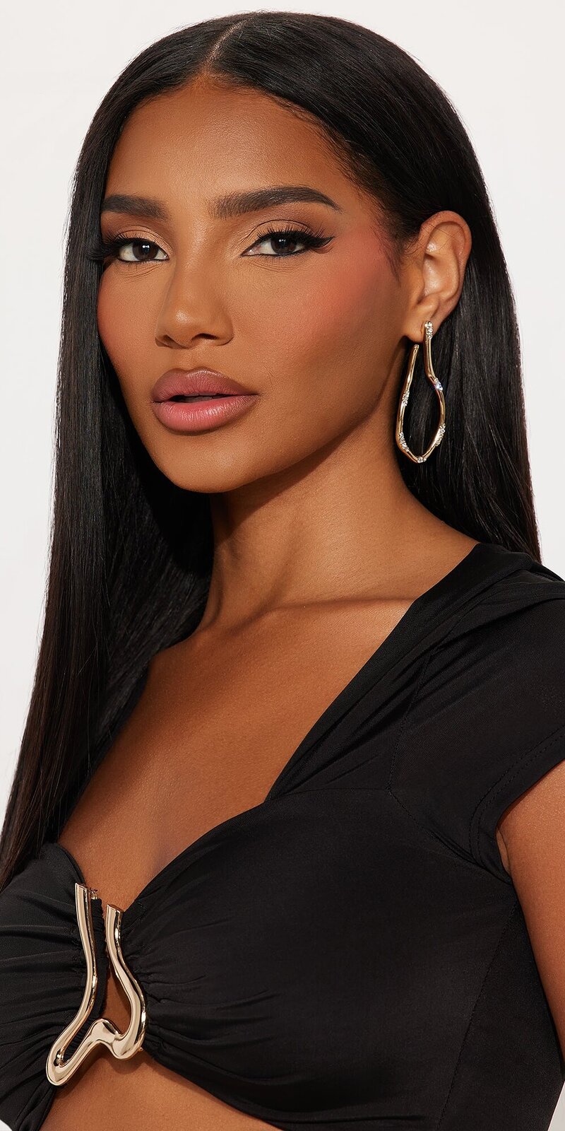 Kovové prevedenie v zlatom tóne pôsobí luxusne a nadčasovo, zatiaľ čo klasické zapínanie na tŕň zaisťuje bezpečné a pohodlné nosenie. Náušnice sú ideálne k večerným šatám, ale rovnako zažiaria aj pri elegantnom dennom outfite.