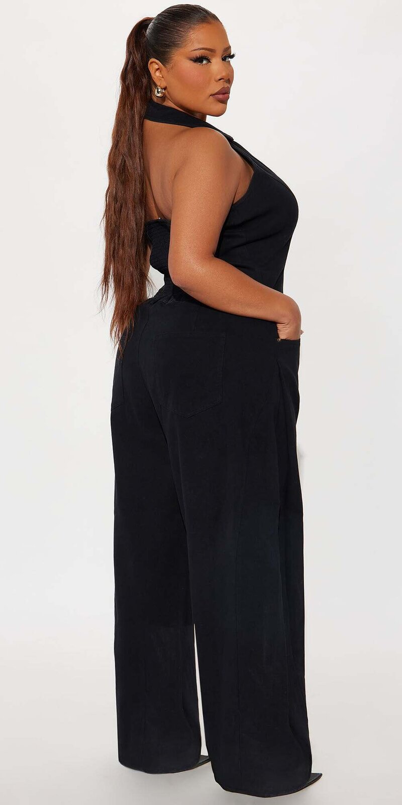 Čierny overal so širokými barrel nohavicami je model, ktorý spája funkčnosť a moderný dizajn. Vďaka svojmu štruktúrovanému strihu sa stáva neprehliadnuteľným kúskom na každý deň.