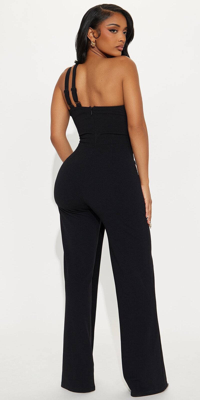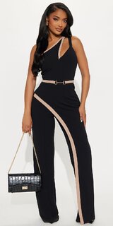 Elegantný overal v čierno-bielej kombinácii s tenkými nastaviteľnými ramienkami a ozdobnou prackou v páse. Pružný materiál sa krásne prispôsobí postave a široké nohavice dodávajú modelu sofistikovaný vzhľad.
