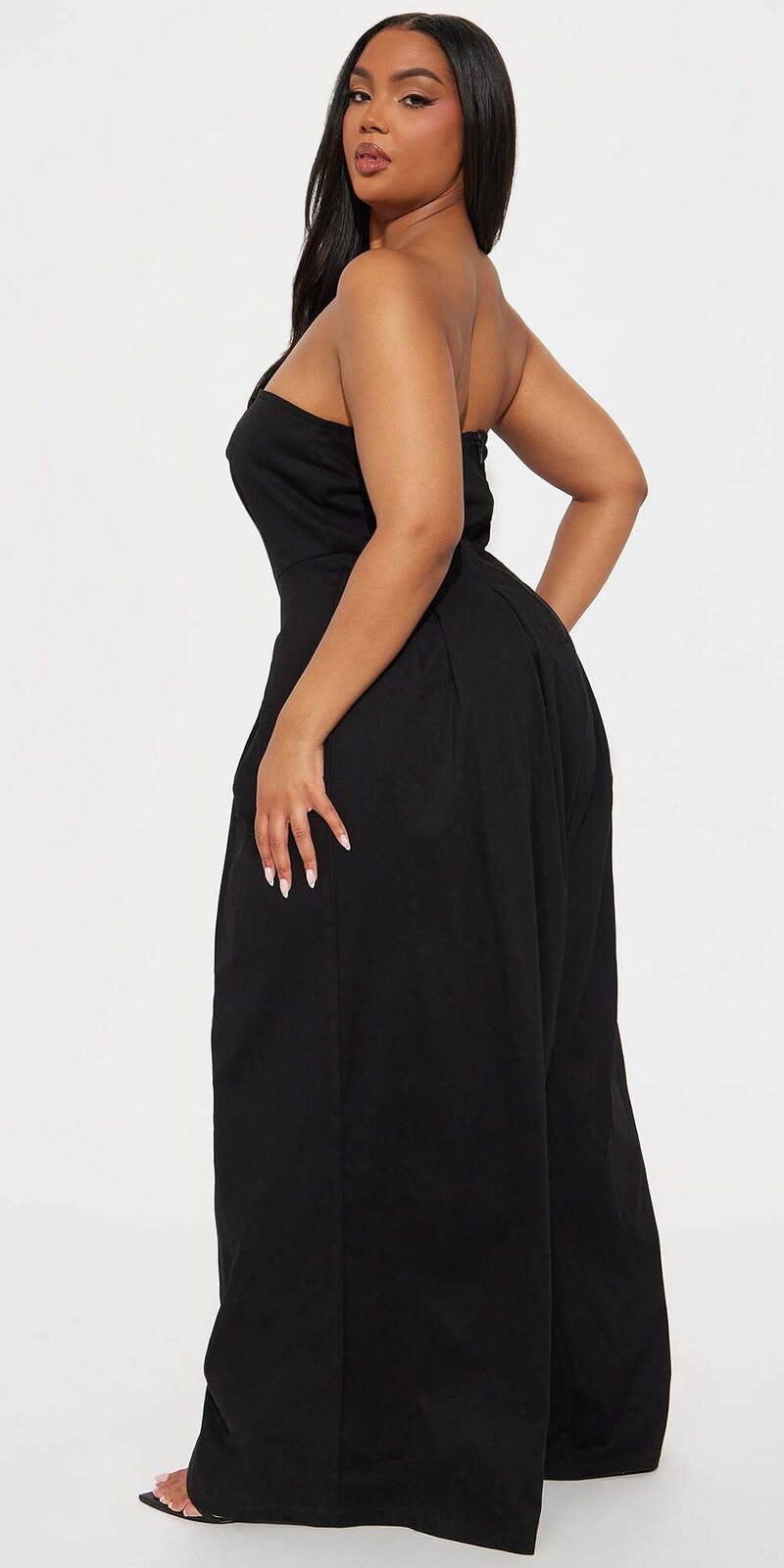 Čierny overal bez ramienok s asymetrickým výstrihom