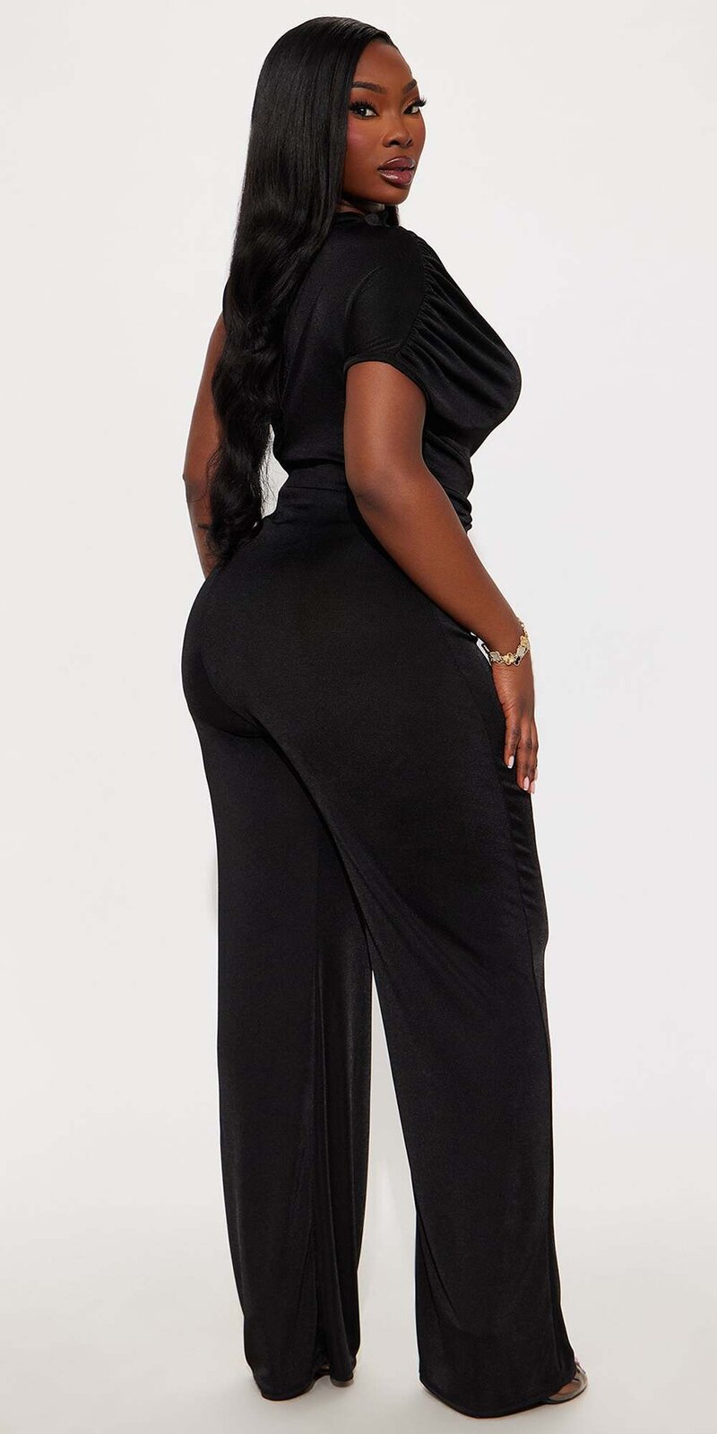 Čierny overal s nariaseným detailom a širokými nohavicami Zväčšiť