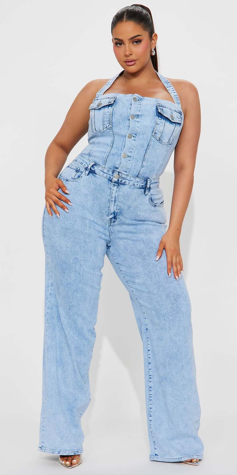 Džínsový overal v svetlom odtieni je dokonalou kombináciou pohodlia a módneho vzhľadu. Je navrhnutý tak, aby pôsobil žensky a zároveň uvoľnene – ideálny na voľný čas, mestské prechádzky či neformálne stretnutia.
