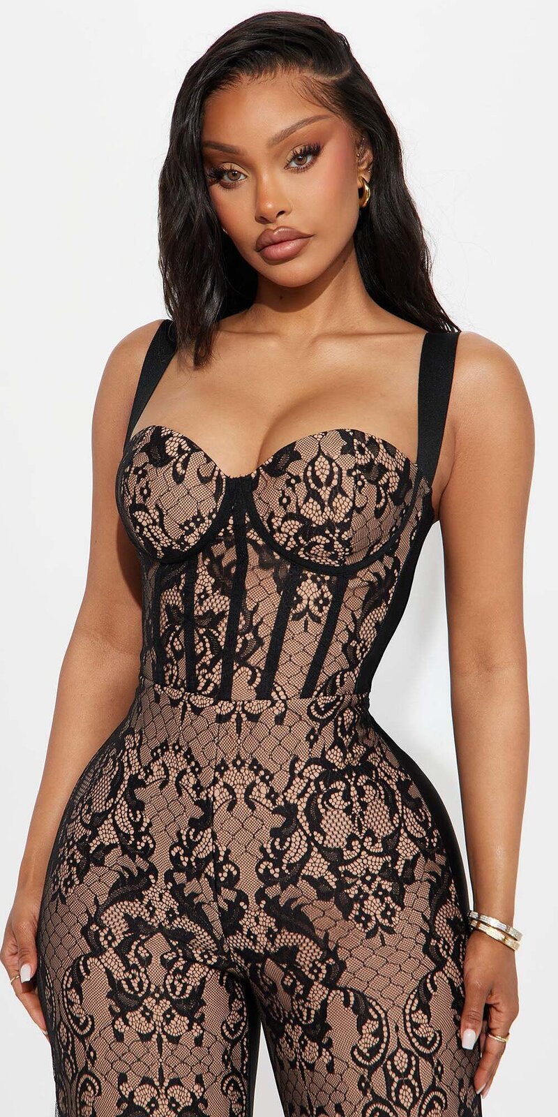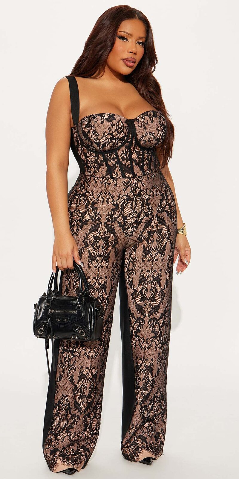 Luxusný overal v čiernej farbe s kontrastným pásovým vzorom predstavuje dokonalú kombináciu elegancie a originality. Je navrhnutý tak, aby pútal pozornosť a súčasne lichotil postave.