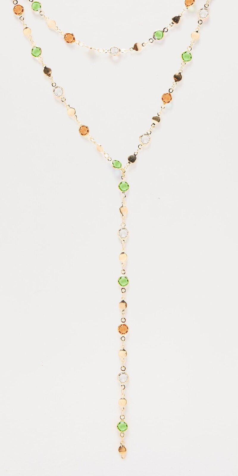 Zlatý lariat náhrdelník s viacfarebnými zelenými kamienkami Zväčšiť