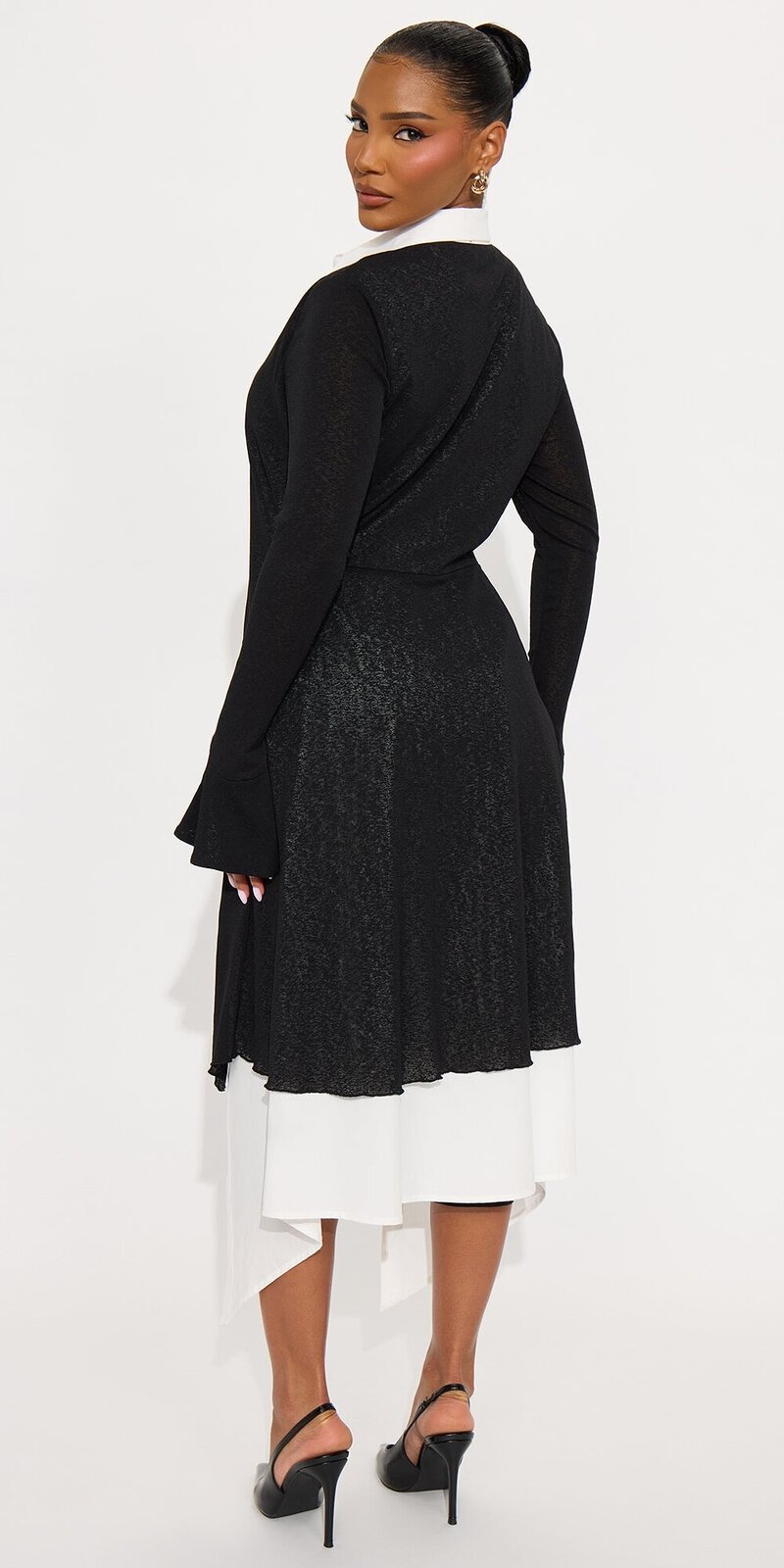 Štýlový kardigán v čierno-bielej kombinácii pôsobí uhladene a moderne vďaka kontrastnému golieru a zapínaniu s prackou. Kombinácia hladkého syntetického materiálu a bavlneného popelínu je príjemná na dotyk, ľahká a zároveň drží tvar.