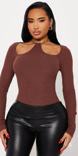 Výrazný rebrovaný top v hnedej farbe zaujme kovovým retiazkovým ramienkom, zmyselným prestrihom a priliehavým strihom. Pružný úplet je jemný na dotyk, pohodlný a krásne obopína siluetu.
