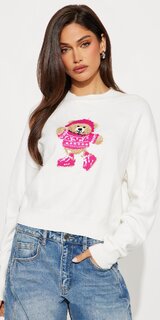 Tento skrátený sveter v béžovej farbe prináša kombináciu pohodlia a moderného dizajnu. Hravý grafický motív dodáva modelu originálny charakter a vytvára výrazný módny akcent.