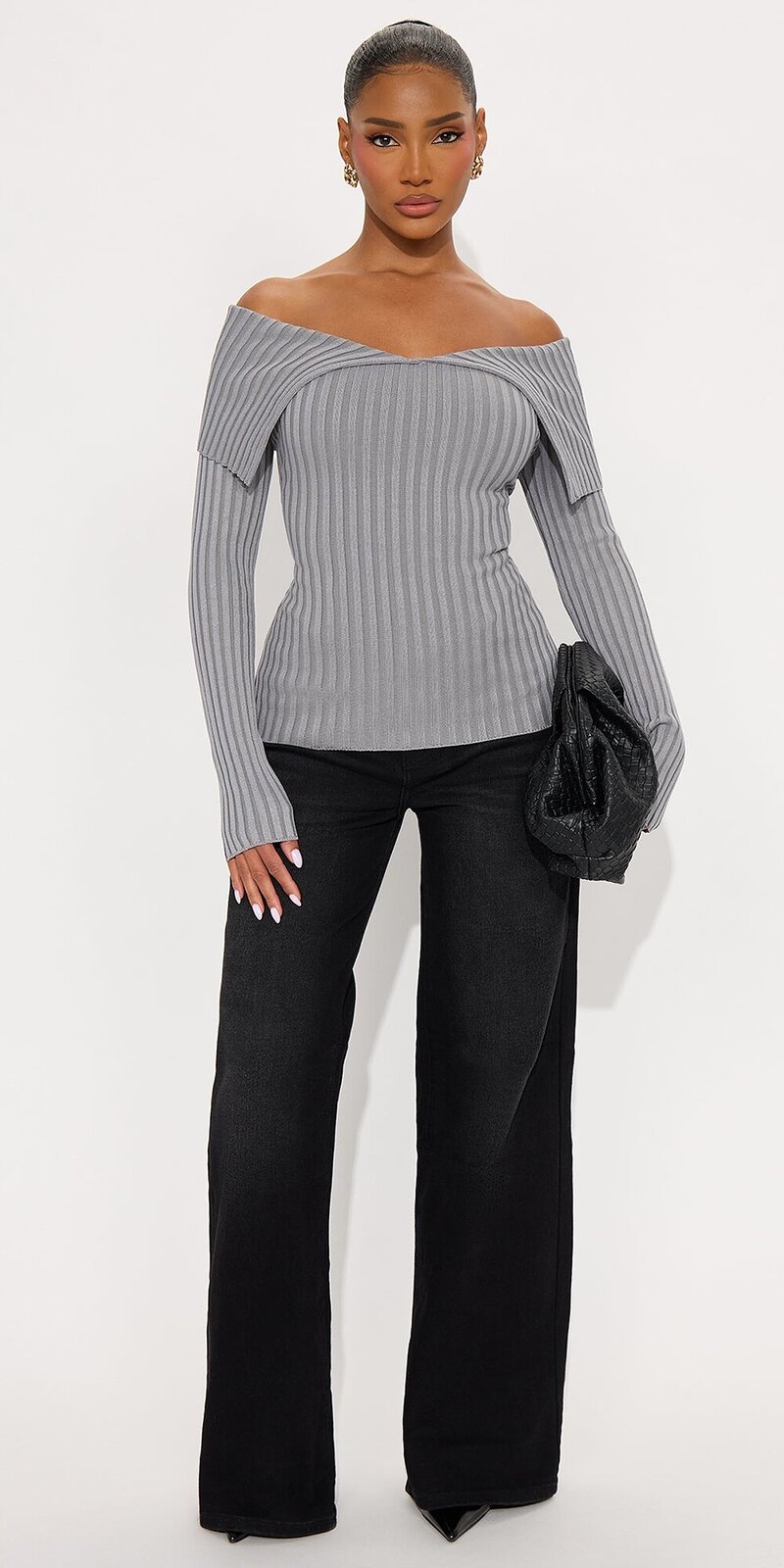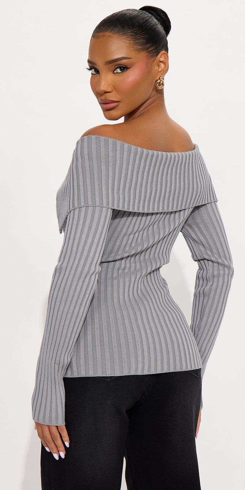 Štýlový sveter v šedej farbe zaujme strihom s odhalenými ramenami, prekladaným výstrihom a jemným opraným efektom. Mäkký viskózový úplet je hebký na dotyk, pružný a príjemne splýva po siluete.