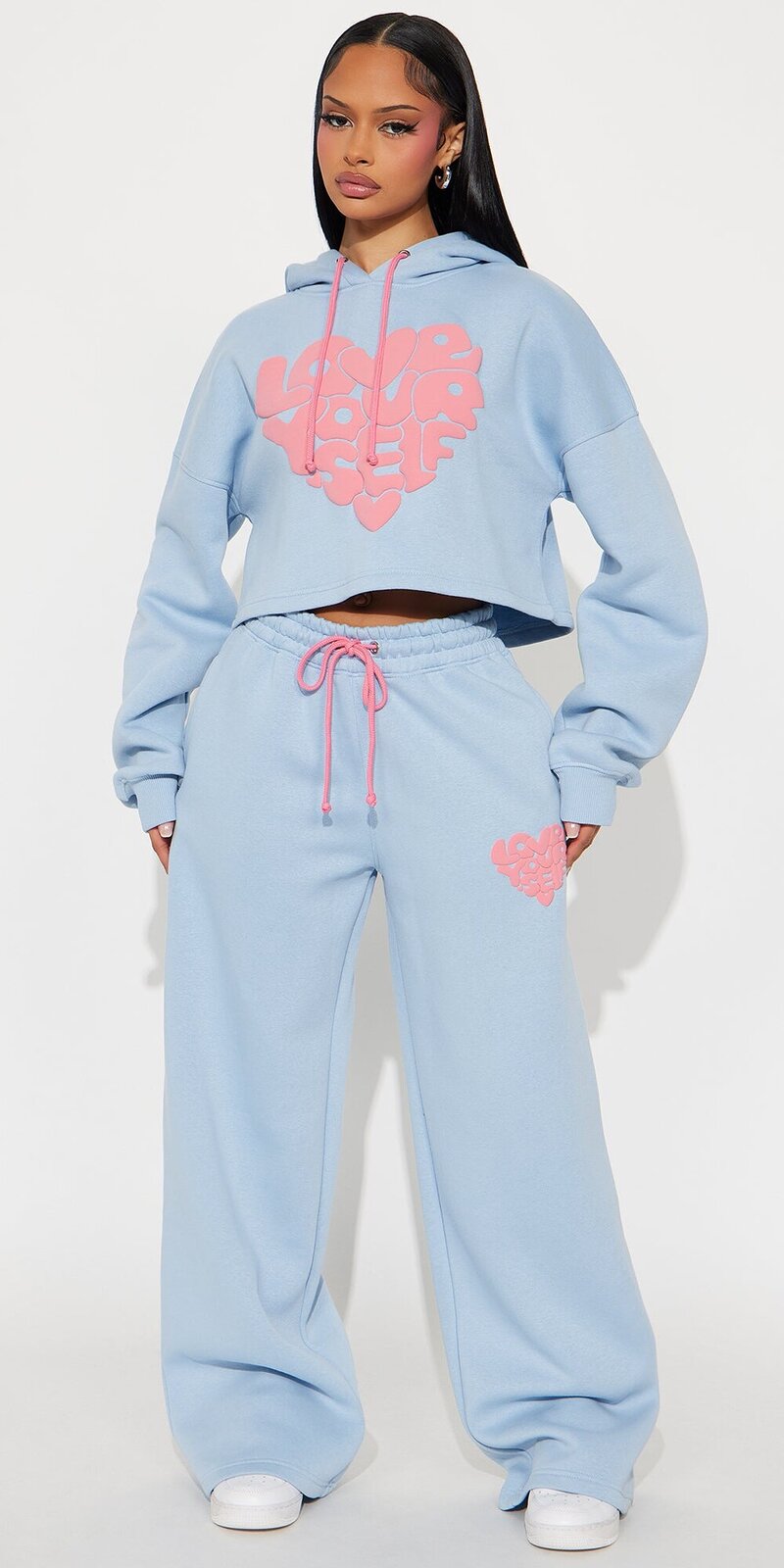 Svetlomodrá fleecová tepláková súprava s voľnými nohavicami Zväčšiť