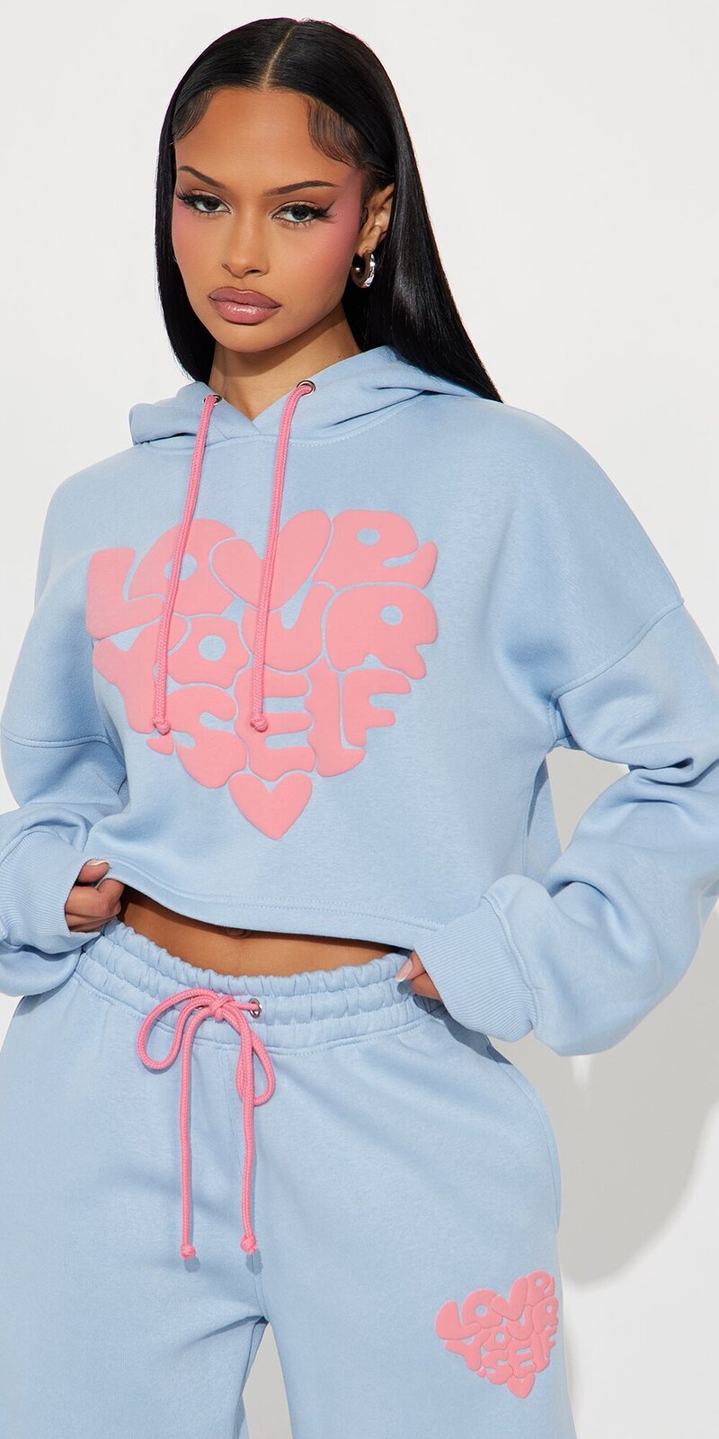 Pohodlná dvojdielna súprava z mäkkého fleecového úpletu, ktorý je na dotyk hebký a príjemne hrejivý. Mikina s voľným strihom dopĺňa široké nohavice s elastickým pásom a praktickými vreckami. Jemná pružnosť zvyšuje komfort pri nosení a svetlomodrá farba pôsobí sviežo a moderným dojmom.