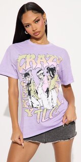 Toto fialové tričko s potlačou prinesie do vášho šatníka svieži a štýlový nádych. Jemný opraný efekt dodáva tričku ležérny vzhľad, ktorý pripomína obľúbené retro kúsky. Predná potlač inšpirovaná ikonickou estetikou dodáva modelu osobitý charakter.