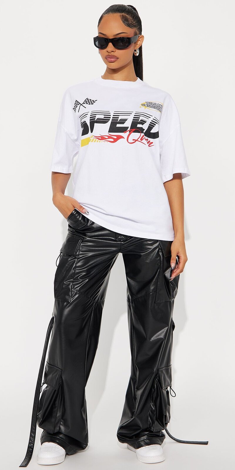 Toto oversize tričko v bielej farbe je ideálnym kúskom pre milovníčky mestského štýlu a moderného streetwearu. Voľný strih pôsobí uvoľnene a trendy, vďaka čomu sa tričko ľahko kombinuje s džínsami, sukňami aj kraťasmi.