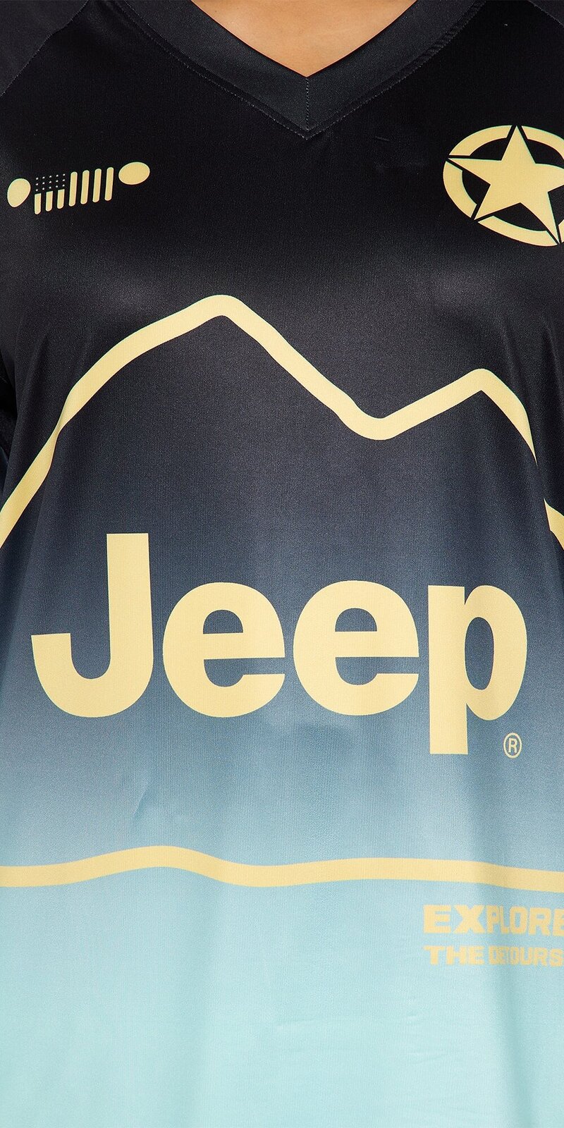 Véčkový výstrih opticky predlžuje siluetu a dodáva modelu ženský nádych, zatiaľ čo pružný materiál zabezpečuje maximálny komfort počas celého dňa. Potlač na prednej strane vytvára dominantný dizajnový prvok, ktorý podčiarkuje originálny štýl trička.
