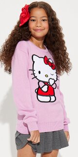 Roztomilý detský sveter v ružovej farbe s dlhým rukávom a okrúhlym výstrihom. Predná strana zdobená ikonickou postavičkou Hello Kitty s motívom „Wink“. Kombinácia bavlny a akrylu zaručuje mäkkosť aj odolnosť.