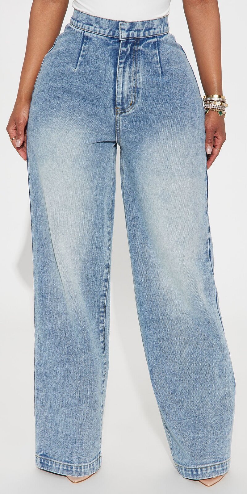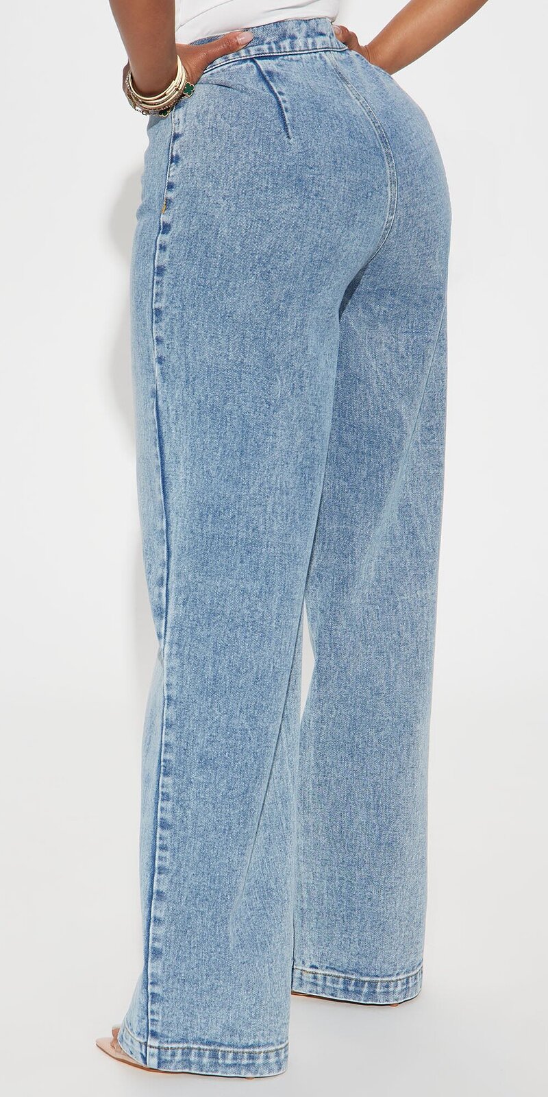 Elegantné dámske džínsy v stredne modrej farbe s vysokým pásom a rovným strihom. Vyrobené z pevného denimu bez elastanu, s unikátnym spracovaním povrchu pre autentický vintage efekt.