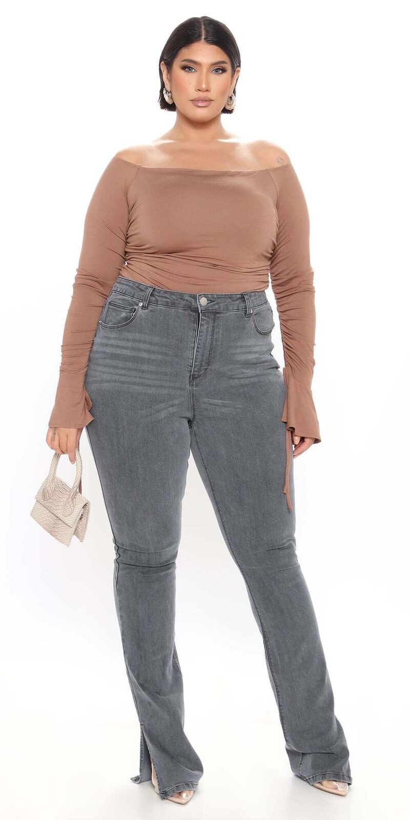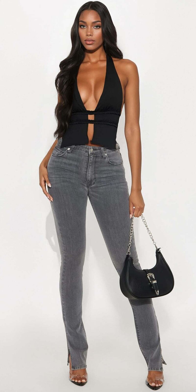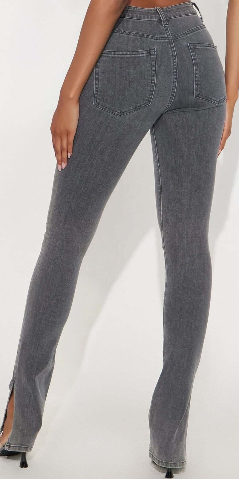 Skinny džínsy v šedej farbe s vysokým pásom a decentnými rozparkami pri členkoch sú dokonalým spojením klasiky a moderného dizajnu. Ich úzky strih krásne tvaruje postavu a predlžuje siluetu.