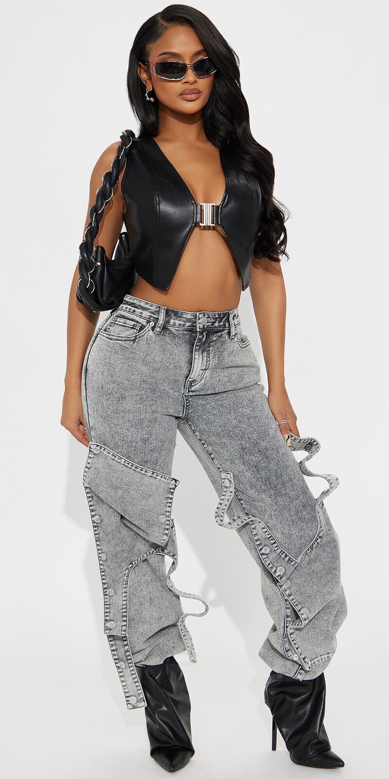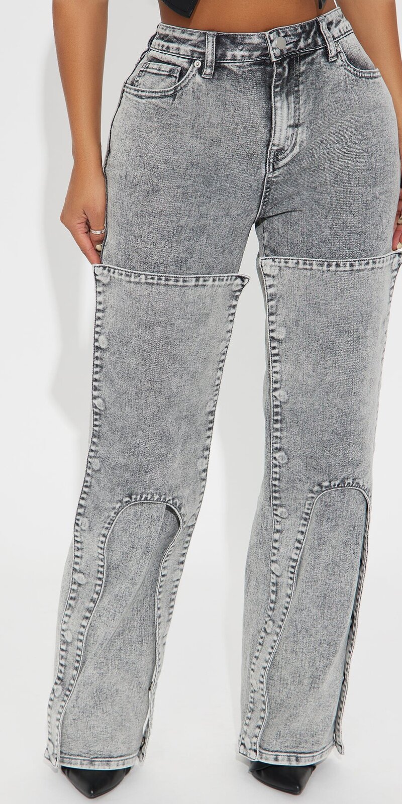 Džínsy She Snapped Straight Leg Jeans v sivej farbe zaujmú svojím minimalistickým štýlom doplneným o elegantné cvoky po bokoch. Tento detail dodáva modelu osobitý, módny charakter.