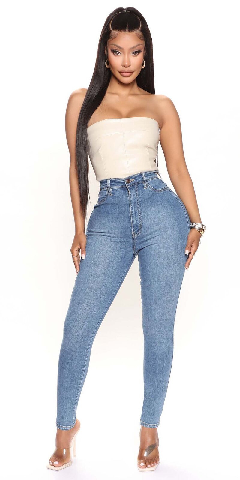 Elegantné rifle v stredne modrej farbe ponúkajú maximálne pohodlie vďaka vysokému pásu a vysokej elasticite. Úzky strih krásne zvýrazní postavu a pôsobí štýlovo.