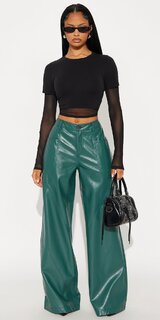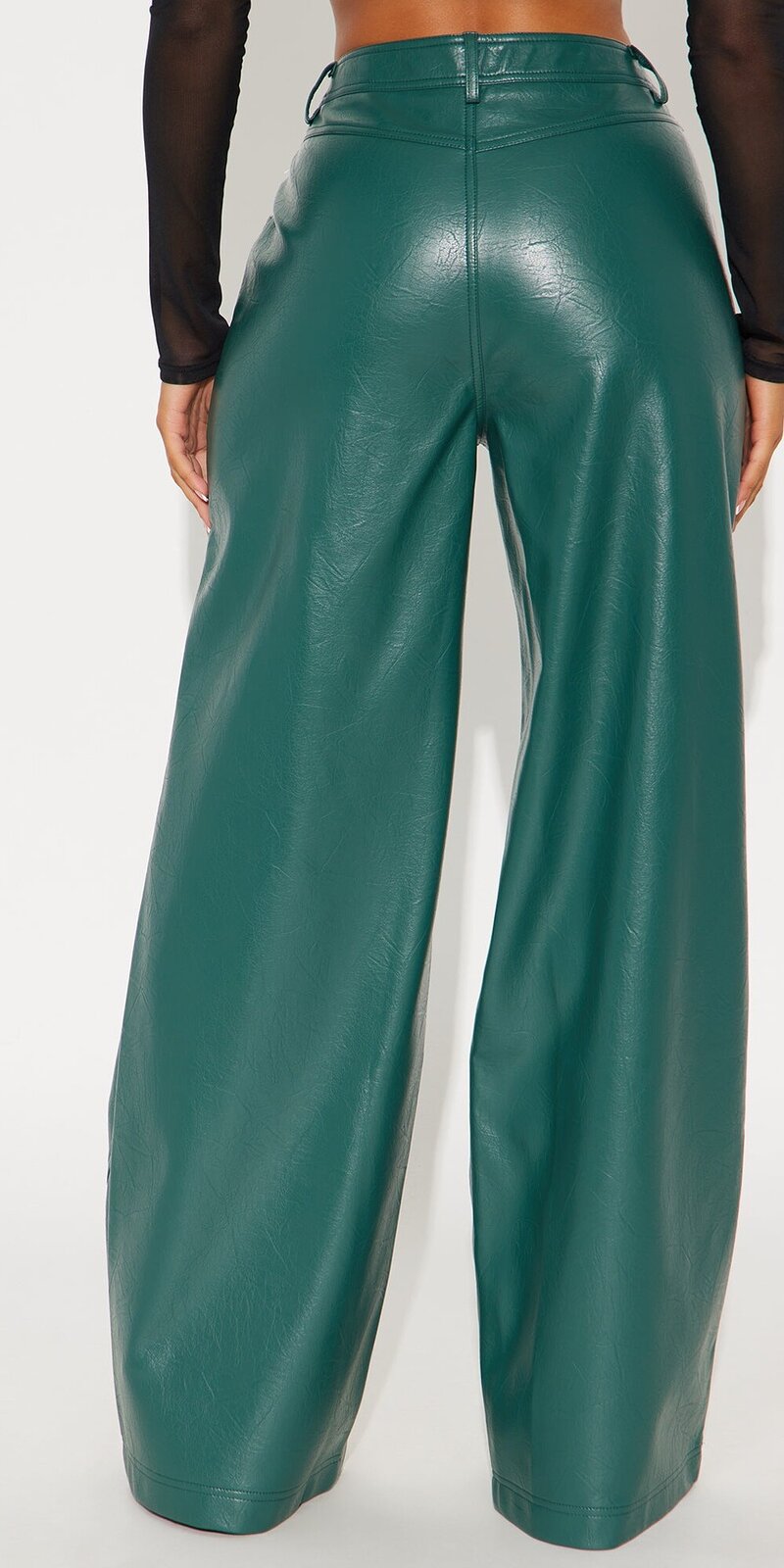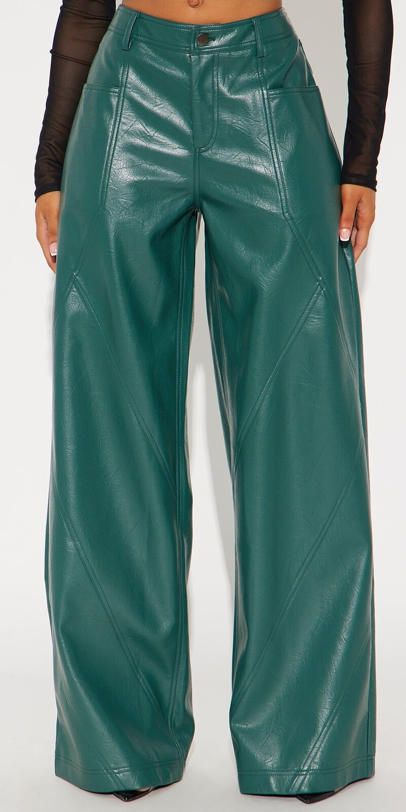 Výrazné nohavice s rozšírenými nohavicami z umelej kože v zelenej farbe