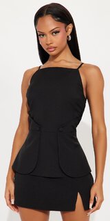 Krepový top s opaskom a nastaviteľnými ramienkami v čiernej farbe