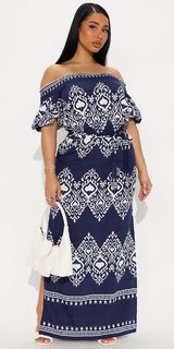 Tieto maxi šaty v modrej farbe sú dokonalou voľbou pre ženy, ktoré milujú spojenie pohodlia a elegantného vzhľadu. Odhalené ramená dodávajú modelu jemne zmyselný nádych, zatiaľ čo splývavý strih pôsobí vzdušne a noblesne.