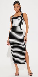 Pruhované midi šaty bez rukávov v čierno-bielej kombinácii