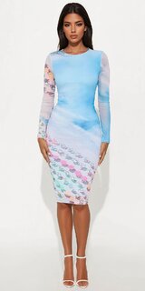 Výrazné midi šaty s viacfarebným vzorom zaujmú jemne priesvitným sieťovaným efektom a elegantným vysokým výstrihom. Pružný, hladký materiál je príjemný na dotyk, krásne obopína siluetu a vďaka podšívke poskytuje komfort pri nosení.