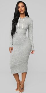Úpletové midi šaty s kapucňou v šedej farbe