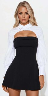 Čierne mini košeľové šaty s viazaním na rukávoch