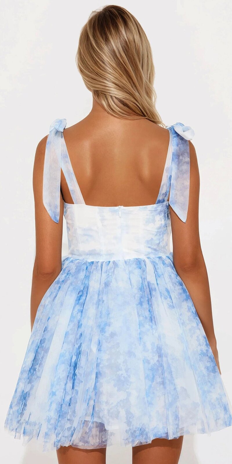 Tieto korzetové mini šaty v modrej farbe sú očarujúcim kúskom, ktorý zvýrazní ženskú siluetu a dodá outfitu romantický charakter.