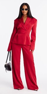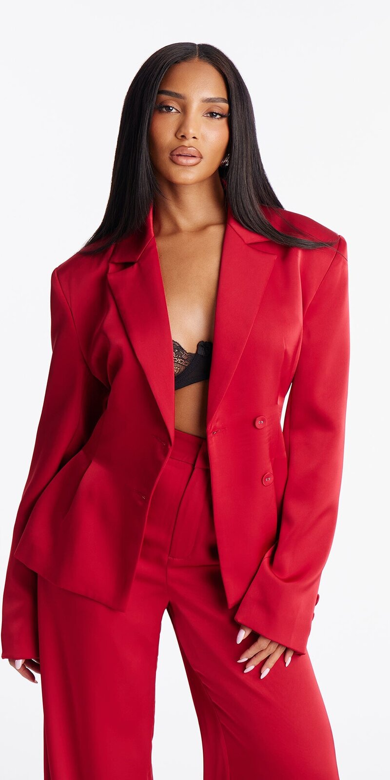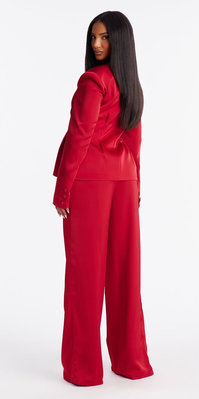 Červená saténová súprava s blejzrom a širokými nohavicami