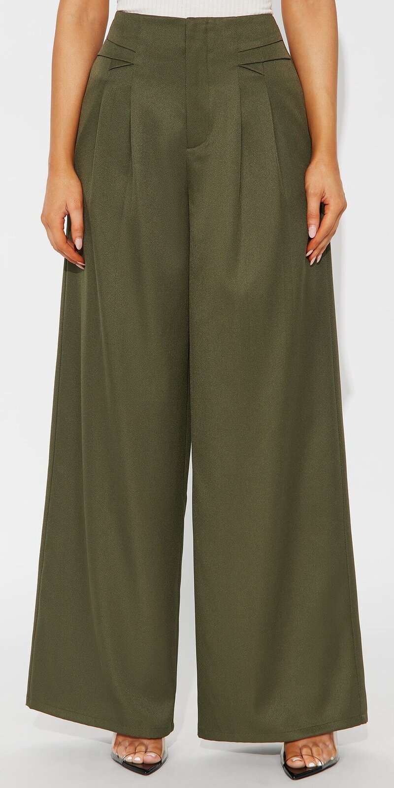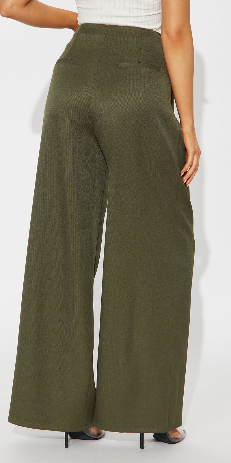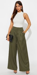 Elegantné nohavice so širokými nohavicami a vysokým pásom v zelenej farbe