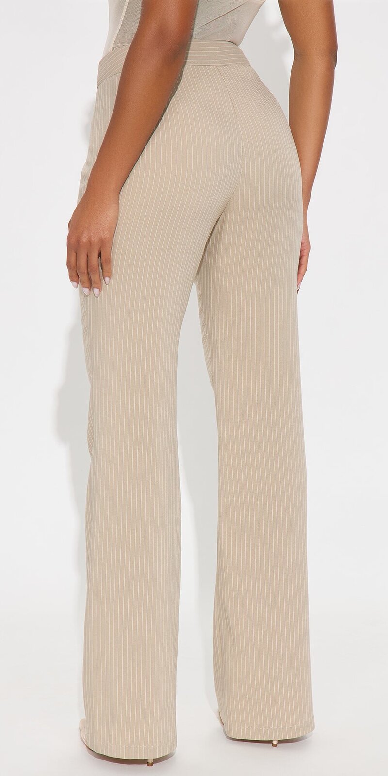 Tieto pruhované nohavice v béžovej farbe sú ideálnou voľbou pre ženy, ktoré preferujú elegantný a moderne pôsobiaci štýl. Rovný strih vytvára vyváženú siluetu a pôsobí veľmi sofistikovane pri každodennom aj formálnejšom nosení.