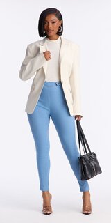 Tieto skinny nohavice v modrej farbe sú ideálnym základom moderného šatníka. Vysoký pás krásne zvýrazňuje siluetu a opticky predlžuje nohy, zatiaľ čo priliehavý strih pôsobí elegantne a sebavedomo.