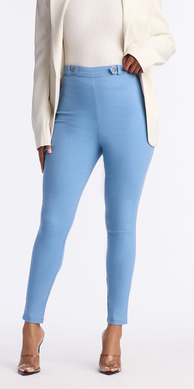 Skinny nohavice s vysokým pásom a elastickým pásom v modrej farbe